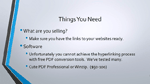 Module 1 - Introduction and OverviewBefore we get started, you're going to get a quick overview of this particular video course and how it is laid out so that you can understand how to implement it faster. We will also cover which tools you're going to need. Keep in mind that in order to create PDF files with hyperlinks that actually work, you will have to invest some money. However, with that said, we will be focusing on tools that don't break the bank. Depending on how advanced you want to go, we will cover two different types of tools.